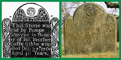 Gravestone Rubbing is described at ancestry.com. We want to emphasize the precautions about checking that the stone is sturdy and that any cleaners or tools won't do damage. These two photos, a well done rubbing showing the beauty of the art and the other showing its age and, according to the source (a blog), maybe damage from repeated rubbing.
